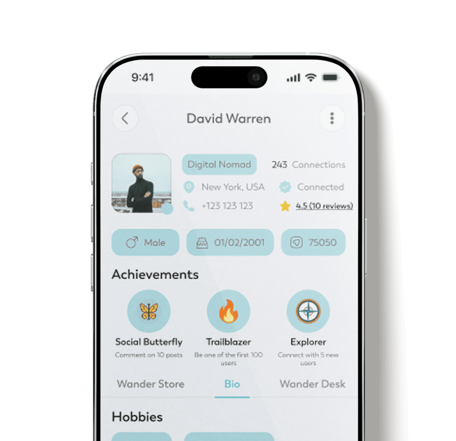 Join a verified global network of entrepreneurs, travelers, and remote workers — connect based on location, interests, and professional goals.